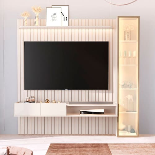 Produzido 100% em MDF, o Conjunto Vitória Régia oferece durabilidade, resistência e excelente padrão de acabamento, sendo ideal para quem valoriza beleza, conforto e praticidade em cada detalhe. Produto Montado: Sim Acabamento: Pintura UV Acabamento da Porta: Pintura UV Acabamento da Prateleira: Pintura UV Acompanha Lâmpada: Não Ambiente Principal: Sala de Estar codigo_ean: 7900288322920 Complexidade da Montagem: Alta: deve ser montado por um montador especializado Cor: Off White Cor da Prateleira: Bege Cor do Produto: Off White Cor Flex: não Cor Interna: Off White Escala de Brilho: Semi-Brilho Escala de Brilho da Porta: Semi-Brilho Escala de Brilho da Prateleira: Semi-Brilho Espessura do Painel: 1,5 cm Espessura do Vidro: 3 mm Fixação na Parede: Sim Ideal para TVs até (Polegadas): 75 Informações Complementares: Iluminação fita LED Itens Inclusos: 1 Painel, Kit Ferragens e Manual de Montagem Linha ou Coleção: Vitoria Regia Manual de Especificação Técnica: https://product-hub-prd.madeiramadeira.com.br/503142203/documents/1a223124-d0e1-42b0-9b4f-6115f96f97a53378634540417702916811434.pdf Manual de Montagem e Instalação: https://product-hub-prd.madeiramadeira.com.br/503142203/documents/0bf1727c-c660-4ed4-8eb3-3a4e2dde76a5337863354041770291637449.pdf Marca: JB Bechara Material da Porta: MDF Material da Prateleira: MDF Material do Puxador da Porta: MDF Material Principal: MDF Montagem Flex: não Necessita Montagem: Sim Origem do Produto: Nacional Peso: 130,8 kg Peso Máximo por Prateleira: 2 kg Possui Espelho: Não Possui iluminação: Sim Possui Passa Cabos: Sim Possui Pés: Suspenso Possui Prateleiras: Sim Possui Tomada: Não Possui Vidro: Sim Quantidade de Nichos: 01 Recomendações de Uso, Manutenção e Limpeza: Na remoção da poeira utilize flanela limpa e levemente umedecida. Não exponha à luz solar e locais úmidos. Não encoste o móvel na parede para evitar transmissão de umidade. Sapatas Niveladoras: Não Sistema de Montagem: O produto será entregue desmontado, acompanhado do manual de montagem. Não oferecemos serviço de montagem. A montagem e instalação é por conta do cliente. Recomendamos a contratação de um profissional. Não nos responsabilizamos por danos decorrentes a e Suporte de TV Universal Incluso: Não Tipo de Puxador da Porta: Embutido