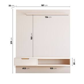 Um painel para TV com nichos e prateleira superior, ideal para organizar e valorizar sua sala. Ele serve para acomodar a televisão, aparelhos eletrônicos e objetos decorativos, deixando o ambiente funcional e elegante. Pode ser utilizado na sala de estar, quarto ou área de lazer. Combina com móveis modernos, cores neutras, plantas, luminárias, mesas de centro e itens decorativos minimalistas, criando um espaço sofisticado e bem organizado. Imagem com decoração ilustrativa. Produto Montado: Sim Acabamento: Pintura UV Acabamento da Gaveta: Pintura UV Acabamento da Prateleira: Pintura UV Ambiente Principal: Sala de Estar codigo_ean: 7900288289407 Complexidade da Montagem: Média: pode ser montado por mais de uma pessoa e/ou necessite de maior conhecimento para montagem Cor: Off White Cor da Prateleira: Bege Cor do Produto: Off White Cor Flex: não Cor Interna: Off White Escala de Brilho: Semi-Brilho Escala de Brilho da Gaveta: Semi-Brilho Escala de Brilho da Prateleira: Semi-Brilho Espessura do Painel: 1,5 cm Fixação na Parede: Sim Gaveta com Chave: Não Ideal para TVs até (Polegadas): 75 Itens Inclusos: 1 Painel, Kit Ferragens e Manual de Montagem. Linha ou Coleção: Plus Manual de Especificação Técnica: https://product-hub-prd.madeiramadeira.com.br/836868042/documents/5f6c0f37-74e6-44ac-b616-a582892b53a83333476540417643538780333.pdf Manual de Montagem e Instalação: https://product-hub-prd.madeiramadeira.com.br/836868042/documents/17bcac48-d455-408e-97f5-d9ca1835b7b53333475540417643538681389.pdf Marca: JB Bechara Material da Gaveta: MDF Material da Prateleira: MDF Material Principal: MDF Montagem Flex: não Necessita Montagem: Sim Origem do Produto: Nacional Peso: 83,1 kg Peso Máximo por Gaveta: 2 kg Peso Máximo por Prateleira: 2 kg Possui Espelho: Não Possui iluminação: Não Possui Passa Cabos: Sim Possui Pés: Suspenso Possui Portas: Não Possui Prateleiras: Sim Possui Tomada: Não Possui Vidro: Não Quantidade de Gavetas: 01 Gaveta Quantidade de Nichos: 01 Recomendações de Uso, Manutenção e Limpeza: Na remoção da poeira utilize flanela limpa e levemente umedecida. Não exponha à luz solar e locais úmidos. Não encoste o móvel na parede para evitar transmissão de umidade. Sapatas Niveladoras: Não Sistema de Montagem: parafusos, cavilhas e minifix Suporte de TV Universal Incluso: Não Tipo de Corrediça da Gaveta: Metálica Telescópica Tipo de Puxador da Gaveta: Embutido