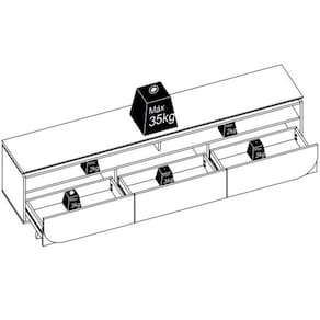 - Informações Adicionais: Gavetas laterais com detalhe curvo/Pés usinados/Tampo da TV suspenso em 25mm com borda chanfrada