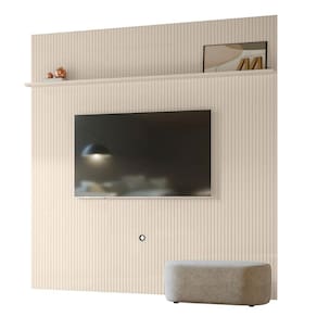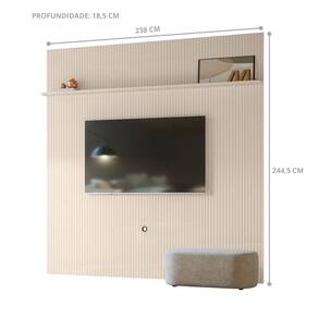 Painel em MDF frisado (baixo relevo), estrutura com chapas em MDP e MDF de 12 e 25mm. Suporta TV até 75". Produto desenvolvido para ser fixado na parede. O televisor deve ser fixado no painel.