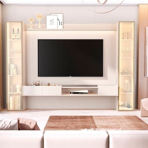 Produzido 100% em MDF, o Conjunto Vitória Régia oferece durabilidade, resistência e excelente padrão de acabamento, sendo ideal para quem valoriza beleza, conforto e praticidade em cada detalhe. Produto Montado: Sim Acabamento: Pintura UV Acabamento da Porta: Pintura UV Acabamento da Prateleira: Pintura UV Acompanha Lâmpada: Não Ambiente Principal: Sala de Estar codigo_ean: 7900288325730 Complexidade da Montagem: Alta: deve ser montado por um montador especializado Cor: Off White Cor da Prateleira: Off White Cor do Produto: Off White Cor Flex: não Cor Interna: Off White Escala de Brilho: Semi-Brilho Escala de Brilho da Porta: Semi-Brilho Escala de Brilho da Prateleira: Semi-Brilho Espessura do Painel: 1,5 cm Espessura do Vidro: 3 mm Fixação na Parede: Sim Ideal para TVs até (Polegadas): 84 Informações Complementares: Iluminação fita LED Itens Inclusos: 1 Painel, 2 Torres, Kit Ferragens e Manual de Montagem Linha ou Coleção: Vitoria Regia Manual de Especificação Técnica: https://product-hub-prd.madeiramadeira.com.br/588235178/documents/e945b63a-204b-4e3c-8323-dc09c6142a063380048540417703855584752.pdf Manual de Montagem e Instalação: https://product-hub-prd.madeiramadeira.com.br/588235178/documents/f621c9ff-3647-4ed9-abdf-bf9001a35fc93380047540417703855394588.pdf Marca: JB Bechara Material da Porta: MDF Material da Prateleira: MDF Material do Puxador da Porta: MDF Material Principal: MDF Montagem Flex: não Necessita Montagem: Sim Origem do Produto: Nacional Peso: 170,1 kg Peso Máximo por Prateleira: 2 kg Possui Espelho: Não Possui iluminação: Sim Possui Passa Cabos: Sim Possui Pés: Suspenso Possui Prateleiras: Sim Possui Tomada: Não Possui Vidro: Sim Quantidade de Nichos: 01 Recomendações de Uso, Manutenção e Limpeza: Na remoção da poeira utilize flanela limpa e levemente umedecida. Não exponha à luz solar e locais úmidos. Não encoste o móvel na parede para evitar transmissão de umidade. Sapatas Niveladoras: Não Sistema de Montagem: O produto será entregue desmontado, acompanhado do manual de montagem. Não oferecemos serviço de montagem. A montagem e instalação é por conta do cliente. Recomendamos a contratação de um profissional. Não nos responsabilizamos por danos decorrentes a e Suporte de TV Universal Incluso: Não Tipo de Puxador da Porta: Embutido