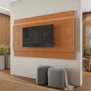 Transforme sua sala de estar com o Painel para TV Aros, uma peça que une sofisticação e funcionalidade em um design contemporâneo. Produzido em 100% MDF de alta qualidade, este painel oferece a robustez necessária para suportar TVs de até 65 polegadas com total segurança. O grande diferencial está em sua iluminação em LED integrada, que valoriza o acabamento amadeirado e cria uma atmosfera acolhedora e moderna para suas noites de cinema em casa. Sua estrutura suspensa é perfeita para otimizar o espaço, tornando-o uma excelente escolha tanto para salas amplas quanto para ambientes reduzidos que buscam sensação de amplitude. Além disso, o móvel foi projetado para manter os fios organizados e fora de vista, garantindo um visual limpo e elegante. Renove seu lar com a qualidade e o estilo que sua família merece. Garanta já o seu Painel Aros e eleve o padrão da sua decoração. Ambiente Principal: Sala de Estar codigo_ean: 7900288336279 Cor: Naturale Cor do Produto: Naturale Espessura do Painel: 5 cm Fixação na Parede: Sim Ideal para TVs até (Polegadas): 75 Itens Inclusos: 1 Painel Linha ou Coleção: Aros Manual de Montagem e Instalação: https://product-hub-prd.madeiramadeira.com.br/709760252/documents/8c366b8a-548d-4a0b-9476-85db559e90413403686554117716055652697.pdf Marca: Mavaular Material Principal: MDF Peso: 43,4 kg Possui Espelho: Não Possui iluminação: Sim Possui Passa Cabos: Sim Possui Pés: Não Possui Vidro: Não Recomendações de Uso, Manutenção e Limpeza: A limpeza do produto deve ser feita por meio do uso de um pano, umedecido com água, e um pano seco. É importante para fazer a limpeza do móvel nunca utilizar produtos químicos ou abrasivos. Suporte de TV Universal Incluso: Não