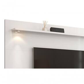Painel Para Tv Aspen Branco - Moveisaqui O Painel para TV Aspen - MoveisAqui possui design moderno que conta com uma prateleira com LED que o tornam o móvel ideal para complementar sua sala de estar. Seu amplo espaço acomoda diversos equipamentos eletrônicos, objetos pessoais e decorativos que o deixam ainda mais ões do Produto Montado:Altura: 135 cm;Largura: 218 cm;Profundidade: 17,6 cm.Observações:- Fabricado em MDP;- Ideal para TVs de até 75;- Pintura ultravioleta com acabamento brilho. Marca: Não Informado
