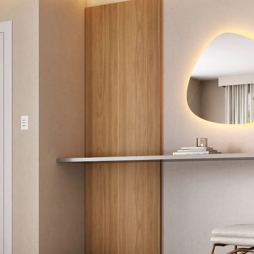 Os painéis Aruá unem aconchego e sofisticação em um design atemporal. Produzidos em chapas de 15mm com revestimento Perfect Wood Jatobá, oferecem modularidade e personalização do espaço. Versáteis, podem ser utilizados como revestimentos de parede ou painéis de TV, transformando o ambiente com harmonia e elegância. Produto Montado: Sim Acabamento: Finish Foil Ambiente Principal: Sala de Estar codigo_ean: 7900288237552 Complexidade da Montagem: Média: pode ser montado por mais de uma pessoa e/ou necessite de maior conhecimento para montagem Cor: Jatobá Cor do Produto: Jatobá Escala de Brilho: Semi-Fosco Espessura do Painel: 1,5 cm Fixação na Parede: Sim Ideal para TVs até (Polegadas): 32 Itens Inclusos: 1 Painel, Manual de Montagem e Kit Ferragens Linha ou Coleção: Aruá Manual de Montagem e Instalação: https://product-hub-prd.madeiramadeira.com.br/983555649/documents/fca6fad8-1be4-4537-8386-68d6dec2a6713230338600517586571038798.pdf Marca: CabeCasa MadeiraMadeira Material Principal: MDP Necessita Montagem: Sim Origem do Produto: Nacional Peso: 21,75 kg Possui Espelho: Não Possui iluminação: Não Possui Passa Cabos: Não Possui Pés: Não Possui Portas: Não Possui Prateleiras: Não Possui Tomada: Não Possui Vidro: Não Recomendações de Uso, Manutenção e Limpeza: A limpeza deve ser feita com pano macio, levemente umedecido com água e sabão neutro. Em seguida, passe um pano seco para evitar o acúmulo de umidade. Nunca utilize produtos abrasivos, esponjas de aço, alvejantes, álcool em excesso ou solventes, pois esses produtos podem agredir o acabamento e comprometer sua aparência. Sistema de Montagem: Parafusos Suporte de TV Universal Incluso: Não