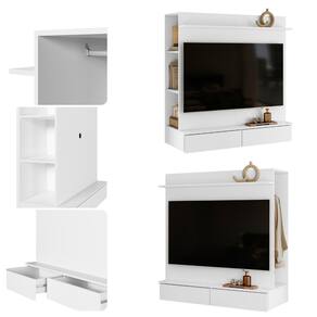 O Painel para TV de até 42 com closet Wave Albatroz, oferecendo funcionalidade e design moderno. Possui 2 gavetas com corrediças telescópicas, 2 prateleiras para organização e 1 cabideiro em alumínio. Estruturado em MDP de 12 e 15mm, com fundo em HDF de 3mm, suporta até 5kg nas gavetas, 4kg nas prateleiras menores e 3kg na prateleira maior. Ideal para otimizar espaço com estilo e funcionalidade.