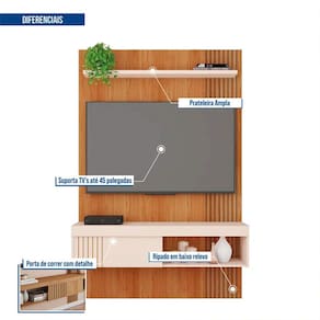 PAINEL PARA TV ATÉ 45 COM PORTA DESLIZANTE JADE CAEMMUN Deixe sua sala sofisticada e elegante com Painel Jade da Caemmun. Com detalhes modernos na lateral ripada em baixo relevo, o painel suporta uma TV de até 45 polegadas. Confira mais detalhes