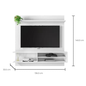 O Painel para TV Átrio em acabamento BP é um móvel prático e funcional que acomoda TVs de até 50 polegadas; possui tampo e prateleira superior de 25mm de espessura e nichos para decoração e aparelhos eletrônicos. Acabamento: BP Acabamento da Prateleira: BP Ambiente Principal: Sala de Estar Complexidade da Montagem: Média: pode ser montado por mais de uma pessoa e/ou necessite de maior conhecimento para montagem Cor: Branco Cor do Produto: Branco Cor Interna: Branco Escala de Brilho: Fosco Escala de Brilho da Prateleira: Fosco Ideal para TVs até (Polegadas): 50 Itens Inclusos: 1 Painel de TV, Kit Ferragens e Manual de Montagem Manual de Montagem e Instalação: https://cdn2.madeiramadeira.com.br/atributo/inusitta-ambientes-planejados/1054619-5080-painel-tv-conve.pdf Material da Prateleira: MDP Material Principal: MDP Necessita Montagem: Sim Origem do Produto: Nacional Peso: 41,623 kg Peso Máximo por Prateleira: 6 kg Possui Espelho: Não Possui iluminação: Não Possui Pés: Não Possui Portas: Não Possui Prateleiras: 02 Possui Tomada: Não Possui Vidro: Não Quantidade de Nichos: 03 Recomendações de Uso, Manutenção e Limpeza: Limpeza com pano úmido Sistema de Montagem: Cavilha, minifix e parafusos Suporte de TV Universal Incluso: Não Marca: Inusitta