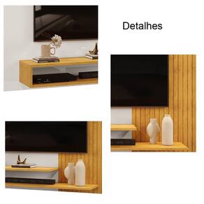 Características: Estrutura em MDF e MDP Acabamento UV Detalhes em Ripado 02 Prateleiras de 15mm 01 Nicho Suporta: Painel 40 kg e Base 10 kg Ideal para TV até 50 Polegadas