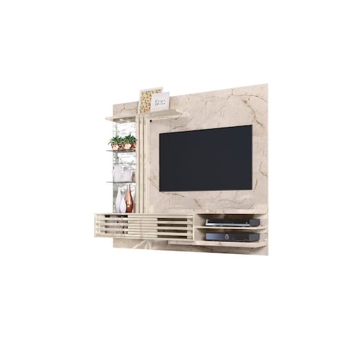 O Painel Frizz Supreme é a escolha ideal para quem quer um ambiente mais elegante e organizado, com visual moderno e acabamento sofisticado em Calacata (brilho) + Off White (brilho). Seu design valoriza a sala com portas deslizantes frisadas, prateleiras (inclusive em vidro) para decoração e um toque premium com espelhos e luminária de LED, deixando o espaço mais aconchegante e atual.