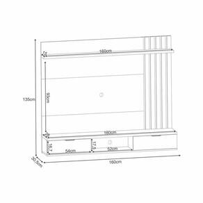 Características: Estrutura: MDP e MDF Espaço 160 cm x 135 cm x 30,5 cm -LxAxP-; TV até 55, 2 Portas basculantes; Autêntico ripado Puxadores em Alumínio; Prateleira superior em MDP 25mm; Peso suportado: 30 Kg Distribuídos