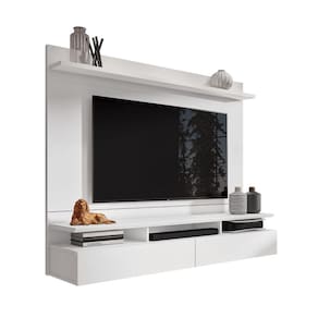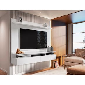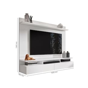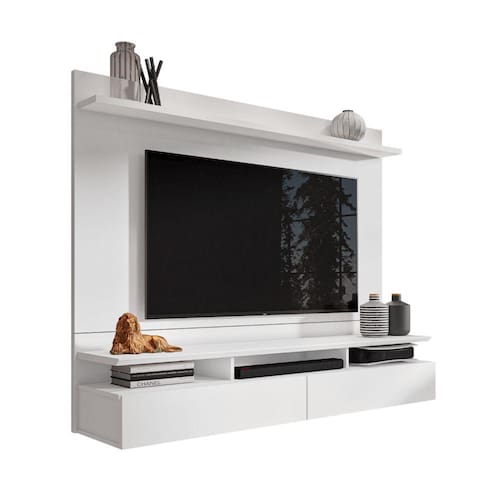 O home suspenso Noruega acrescenta elegância e modernidade para o ambiente e oferece espaços variados para dispor seus objetos pessoais e itens de decoração. Possui uma prateleira superior, uma prateleira inferior com o tampo fresado, três nichos e duas portas para acomodar objetos pequenos. Incremente com beleza e praticidade o seu lugar de aconchego com o painel suspenso. Uso obrigatório da TV fixada no painel.