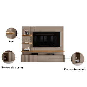 Painel Para Tv Até 65'' 3 Portas Led Bancada Suspensa Atena - Madetec