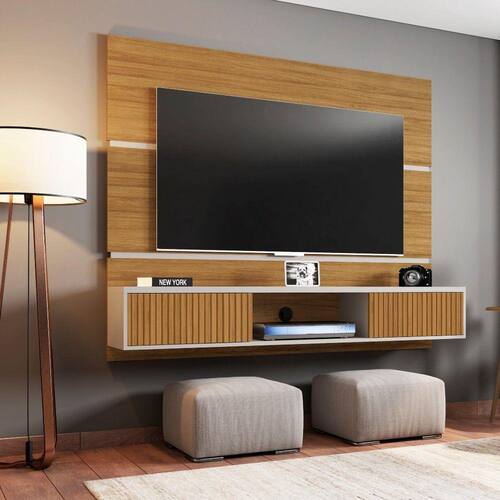 O Painel Âmbar é ideal para sua sala! Com design moderno e muito funcional ele conta com amplo tampo e nicho central que comportam perfeitamente os mais variados tipos de objetos de decoração, bem como aparelhos eletrônicos. Possui duas portas com dobradiças metálicas e amplo espaço interno. A configuração com colunas e barras traseiras de 15mm possibilita a instalação oculta de cabos e fios, que podem ser transpassados à TV e demais equipamentos, na frente do painel. Seu tampo é elaborado em MDP de 25mm, demais componentes da estrutura em MDP de 15mm, garantindo qualidade e resistência ao produto. Com amplo espaço livre no painel ele comporta TVs de até 65 polegadas!