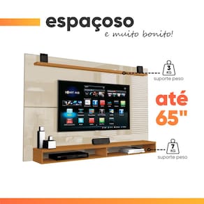 O Painel Max é o móvel que você procura para completar sua casa! Com seu design elegante e moderno. Ele possui espaço para TV de até 65 polegadas e nichos espaçosos para aparelhos eletrônicos, além de uma prateleira superior para objetos de decoração. Perfeito deixar seu ambiente sofisticado.
