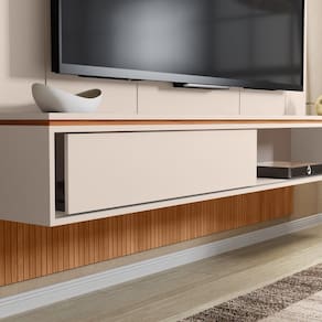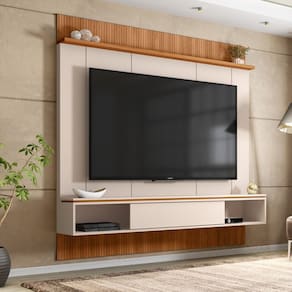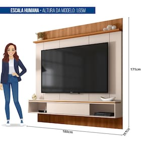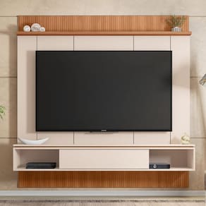 O Painel Venus da Caemmun é a peça que faltava para transformar sua sala de estar em um ambiente sofisticado e funcional. Com design moderno e acabamento em FF, ele adiciona um toque de elegância e leveza ao espaço. Produzido em MDP de alta qualidade, garante durabilidade e resistência. Seu nicho oferece amplo espaço para organizar seus objetos decorativos e eletrônicos, personalizando o ambiente de acordo com seu estilo. Além disso, ele comporta televisores de até 65 polegadas, sendo perfeito para maratonas de filmes e séries. Produto Montado: Sim Acabamento: BP Acabamento da Porta: BP Acabamento da Prateleira: BP Ambiente Principal: Sala de Estar codigo_ean: 7900288064059 Complexidade da Montagem: Média: pode ser montado por mais de uma pessoa e/ou necessite de maior conhecimento para montagem Cor: Off White/Freijó Cor do Produto: Off White/Freijó Escala de Brilho: Fosco Escala de Brilho da Porta: Fosco Escala de Brilho da Prateleira: Fosco Espessura do Espelho: 0 mm Ideal para TVs até (Polegadas): 65 Itens Inclusos: 1 Painel + Kit Ferragens + Manual de Montagem Manual de Montagem e Instalação: https://product-hub-prd.madeiramadeira.com.br/974880/documents/3ecc3ec5-c18e-4aa1-a51e-9f03107c0a2e2638580559517373913006027.pdf Marca: Caemmun Material da Porta: MDP Material da Prateleira: MDP Material Principal: MDP Necessita Montagem: Sim Origem do Produto: Nacional Peso: 53,9 kg Peso Máximo por Prateleira: 2 kg Possui Espelho: Não Possui iluminação: Não Possui Pés: Suspenso Recomendações de Uso, Manutenção e Limpeza: Limpar com pano macio levemente umedecido e em seguida pano macio seco. Não utilizar produtos abrasivos (lixas, esponjas) e/ou produtos a base de solventes (thinner, aguarrás). Sistema de Montagem: Utiliza-se na montagem do produto sistema de fixação minifix, dobradiças, dispositivos angulares, cavilhas, parafusos, porcas cilindricas, entre outros; Tipo de Puxador da Porta: Embutido