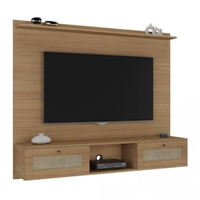 Características: 2 Portas basculantes com amortecedor Frentes almofadadas Pintura 3D em acabamento palha 1 Prateleira superior que suporta até 2kg distribuídos Acompanha suporte para TV Porta fios Tampo e Base suportam até 5 kg distribuídos - cada Portas em MDF 15 mm Prateleira e Painel em MDP 15mm Para TVs de até 72 polegadas