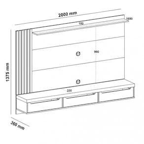 Dimensões: Altura: 137,5 cm Largura: 200 cm Profundidade: 36 cm Peso: 66,50 kg