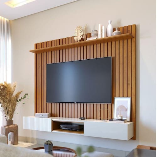 Possui 2 furos passa fio - 1 para tv e outro no nicho aberto.