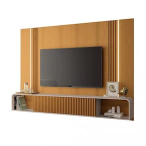 Características: Estrutura em MDP e MDF 2 Portas de correr Iluminação com perfil de LED Suporta até 50kg distribuídos Ideal para TVs até 85 Polegadas
