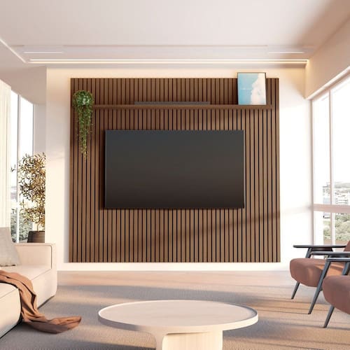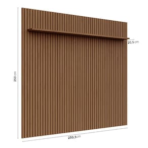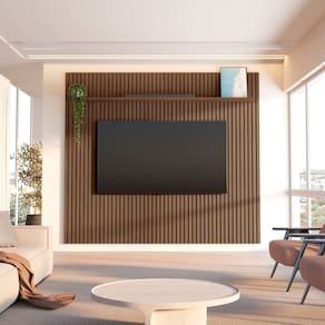 O Painel Aloe une elegância e funcionalidade. Com painel ripado em relevo de 15mm e estrutura em MDF 15mm, oferece sofisticação e praticidade. Disponível para TVs de até 85” e em acabamentos amadeirados Âmbar e Marrom, que seguem as tendências atuais do design. Produto Montado: Sim Acabamento: Pintura UV Acabamento da Prateleira: Impressão Ambiente Principal: Sala de Estar codigo_ean: 7900288230881 Complexidade da Montagem: Média: pode ser montado por mais de uma pessoa e/ou necessite de maior conhecimento para montagem Cor: Cedro Cor da Prateleira: Marrom Cor do Produto: Cedro Cor Interna: Cedro Escala de Brilho: Semi-Brilho Escala de Brilho da Prateleira: Semi-Brilho Espessura do Painel: 3,2 cm Fixação na Parede: Sim Ideal para TVs até (Polegadas): 84 Itens Inclusos: 1 Painel, Manual de Montagem e Kit Ferragens Linha ou Coleção: Aloe Manual de Montagem e Instalação: https://product-hub-prd.madeiramadeira.com.br/336362178/documents/6dd231cd-be5b-4696-9c6c-d21505425c3b3213732600517581444569552.pdf Marca: CabeCasa MadeiraMadeira Material da Prateleira: MDF Material Principal: MDF Necessita Montagem: Sim Origem do Produto: Nacional Peso: 89,99 kg Peso Máximo por Prateleira: 5 kg Possui Espelho: Não Possui iluminação: Não Possui Passa Cabos: Sim Possui Pés: Não Possui Portas: Não Possui Prateleiras: Sim Possui Vidro: Não Quantidade de Nichos: Não Recomendações de Uso, Manutenção e Limpeza: A limpeza deve ser feita com pano macio, levemente umedecido com água e sabão neutro. Em seguida, passe um pano seco para evitar o acúmulo de umidade. Nunca utilize produtos abrasivos, esponjas de aço, alvejantes, álcool em excesso ou solventes, pois esses produtos podem agredir o acabamento e comprometer sua aparência. Sistema de Montagem: Parafusos Suporte de TV Universal Incluso: Não