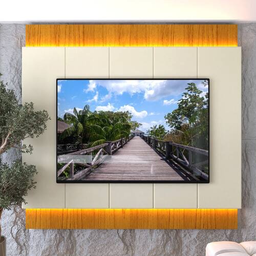 O Painel para TV ate 85 Polegadas com LED em MDF Magnifico Gelius une sofisticacao, tecnologia e funcionalidade. Produzido 100 em MDF, possui detalhes chanfrados em 45, pintura UV de alta qualidade e iluminacao LED em tom quente com tecnologia Touch Sensitive, permitindo ligar e desligar com um simples toque. Seu passa-fios embutido garante um visual moderno, limpo e organizado, ideal para quem busca elegancia e inovacao na decoracao da sala.