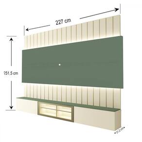 O(a) Painel para TV Até 85 Polegadas Soberano 3 Portas Ripado Autêntico 100% Mdf com Led Off White/Verde Floresta - Gelius é produzido em 100% MDF na escala de brilho Semi-Fosco, e possui um grau de dificuldade de montagem: Médio.