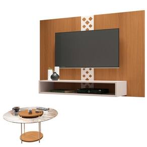 Painel para TV Home Suspenso Form com Mesa de Centro Sky com Tampo de Vidro Cinamomo Off White – HB Móveis