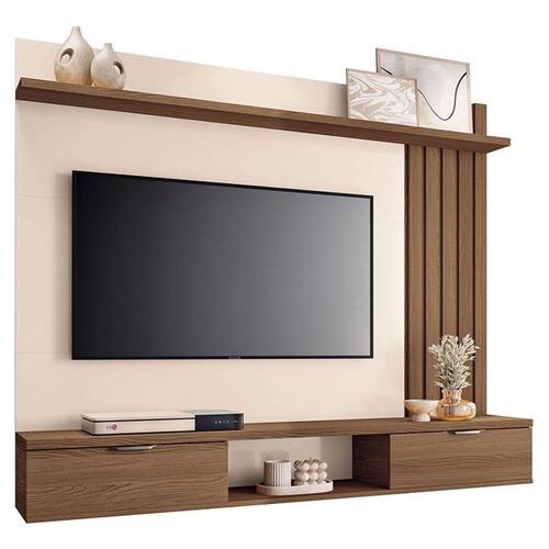 Painel Para TV Lets Castanho Off White - HB Móveis