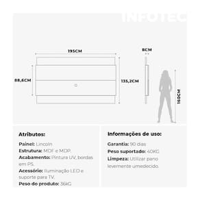 Acompanha suporte para TV em aço perfilado e iluminação por fita LED.