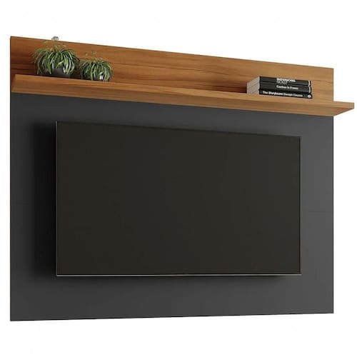 Painel Para Tv Nt 1185 Preto Com Freijó - Notável Ideal para a sua sala de TV, o Painel NT 1185 - Notável, possui desing clean que se adequa a diversos estilos de decoração. Possui uma prateleira para o apoio de itens ões do Produto montado:Altura: 106 cmLargura: 135 cmProfundidade: 20 cmObservações:- Prateleiras superior;- Ideal para TV de até 50 polegadas;- Pintura Ultravioleta com acabamento amadeirado na cor freijó trend.- Pintura Ultravioleta com acabamento fosco na cor preto tx.