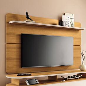 Painel Para Tv Suspenso 70 Pol 180cm Celine Cinamomo/off White O painel para TV Suspenso 70 Pol 180 cm Celine Cinamomo/Off White é perfeito para quem busca criar um ambiente que combine estilo, funcionalidade e uma sensação de atemporalidade. Seu design orgânico e os detalhes sofisticados expressos nos cantos arredondados são elementos que nunca saem de moda. Com o apoio para TVs de até 70 polegadas, esse painel se torna a escolha ideal para quem busca acomodar uma TV de grande porte de maneira segura e estilosa. A prateleira chanfrada em MDF de 8mm é um detalhe que adiciona sofisticação e elegância ao design do móvel. O chanfrado cria um efeito visual interessante, trazendo mais dinamismo para o ambiente. Seja na sala de estar, área gourmet, recepção ou escritório, ele se destaca como uma verdadeira obra de arte, trazendo personalidade e estilo. Sua capacidade de transformar uma parede sem graça em um ponto focal é incrível, tornando o espaço mais sofisticado e acolhedor. É uma escolha inteligente para quem deseja dar um toque de moda e modernidade ao ambiente, criando um espaço único e cheio de charme. Transforme sua casa de maneira surpreendente. Garanta já o seu! Dimensões dos Produtos: Altura: 106,5 cm Largura: 180 cm Profundidade: 19,5 cm Peso: 29 kg Especificações do Produto: Material da Estrutura: MDF/MDP 15mm e 18mm Acabamento: Pintura UV Escala de Brilho: Fosco/Brilhante Peso Suportado Distribuído: 40 Kg Distribuído Suporta TV de até: 70 Polegadas Possui Prateleiras: Sim Quantidade de Prateleiras: 1 Prateleira Possui LED: Não Possui Passa Fios: Sim Diferenciais: Design orgânico; Prateleira chanfrado em MDF 18mm com borda em pintura P.U; Cantos arredondados. Sistema de Montagem: Parafusos/Cavilhas/Minifix Manual de Montagem: Sim Complexidade da Montagem: Baixa Montagem: Recomendamos que seja feita por um profissional Garantia: 90 dias contra defeito de fabricação Instruções de Limpeza: Utilizar um pano limpo e levemente úmido Você irá Receber: 1 Painel para TV. Entregue em: 1 Volume