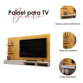 Começou a montar sua sala? Então apresentamos para você este belo painel da linha Bento. Com design funcional e sofisticado, conta com uma porta deslizante, dois nichos e duas prateleiras laterais para acomodar seus aparelhos eletrônicos e objetos decorativos, além do detalhe frisado, acrescentando um toque de elegância ao ambiente. Fabricado pela DJ Móveis, é desenvolvido em MDP/ MDF de madeiras reconstituídas provenientes de reflorestamento, unindo resistência e compromisso com a sustentabilidade. Suportando TVs de até 60 polegadas, será uma perfeita escolha para quem busca praticidade e estilo para compor sua sala. Confira e aproveite!