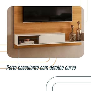 Um móvel robusto, produzido em MDP e MDF, com porta basculante, detalhes curvos, espaço para TV de até 55 polegadas, e ainda, conta um design moderno com nicho decorativo e prateleira de 25mm. Confira mais detalhes abaixo e aproveite!