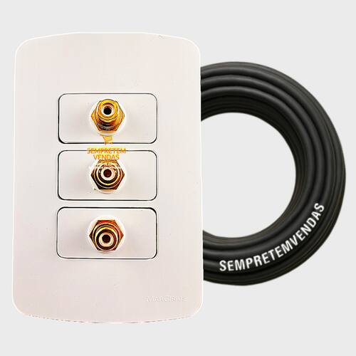 Painel Parede Tomada Áudio e Cabo de Áudio 15 Metros