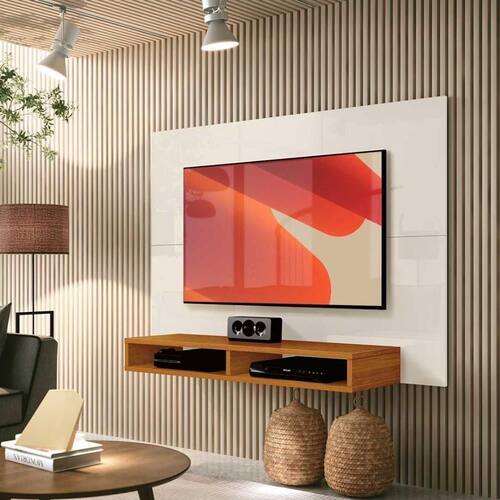 Nichos funcionais: para organização de eletrônicos e objetos decorativos.
