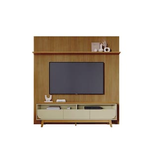 Painel Piso Teto New Guaporé com Rack Bancada Selene New Luna Ambiente Cumaru Opala - Madetec