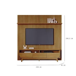 Painel Piso Teto New Guaporé com Rack Bancada Selene New Luna Cumaru - Madetec