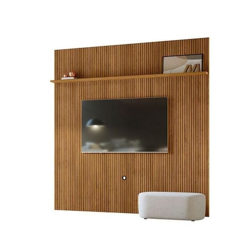Te apresento este Painel Piso - Teto New Guaporé na cor Cumaru com todo seu detalhes especiais para sua sala de estar, um produto desenvolvido para ser fixado na parede, o televisor dever ser fixado no painel, produto com painel em MDF frisado com baixo relevo com estrutura com Chapas em MDP e MDF de 15 e 25 mm. Então aproveite e garanta já o seu Painel com toda qualidade e modernidade para sua sala de estar.