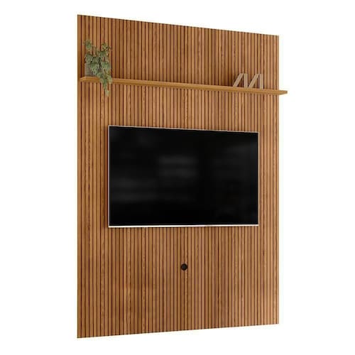 Painel Piso-teto New Interlagos Cumaru Para Tv Até 75 - Madetec Cumaru Painel Piso-Teto New Interlagos para TV até 75 - Madetec O Painel Piso-Teto New Interlagos é a escolha perfeita para quem busca sofisticação e modernidade na sala de estar. Com estrutura em MDF e MDP e pintura UV, oferece resistência e um acabamento impecável. Seu design elegante conta com painel frisado em baixo relevo e a prateleira superior proporciona um espaço extra para decoração ou eletrônicos. Desenvolvido para ser fixado na parede, garante um visual clean e sofisticado e é ideal para TV de até 75. ESPECIFICAÇÕES: - Estrutura em MDF e MDP - Pintura UV - Painel em MDF frisado (baixo relevo) - Prateleira superior - Produto desenvolvido para ser fixado na parede - O televisor deve ser fixado no painel - Ideal para TV até 75