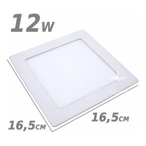 ESPECIFICAÇÕES TÉCNICAS: - Modelo: Painel Led 12W EMBUTIR - Cor do Acabamento: branco - Cor da Luz: Branco Quente - Material: Alumínio - Voltagem: Bivolt 110/220V - Potência em Watts: 12W - Potência em Lúmens: 800lm - Dimensões: 17cm comprimento x 17cm de largura - Dimensões do nicho: 16cm comprimento x 16cm de largura - Economia de energia: 80% - Vida média: ~25000 horas - Ângulo de Abertura: 120º - Garantia: 1 ano após o recebimento contra defeito de fabricação.