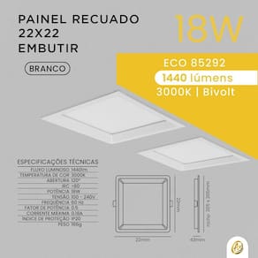 Com um design quadrado e acabamento branco, esse painel oferece um visual moderno e discreto que se integra perfeitamente à sua decoração. Disponível na cor de luz 6500K. Seja para realçar detalhes, iluminar ambientes ou criar uma sensação acolhedora, o Painel Recuado de Embutir é a escolha perfeita. Transforme a iluminação do seu espaço com estilo e sofisticação.