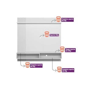 Tipo de Porta - Portas Basculante Quantidade de Portas - 1 Porta de Abrir Tipo de Puxador - Puxador em ABS / PVC Quantidade de Prateleiras - 1 Prateleira Quantidade de nichos - 1 Nicho Ideal para TVs até (Polegadas) - 55