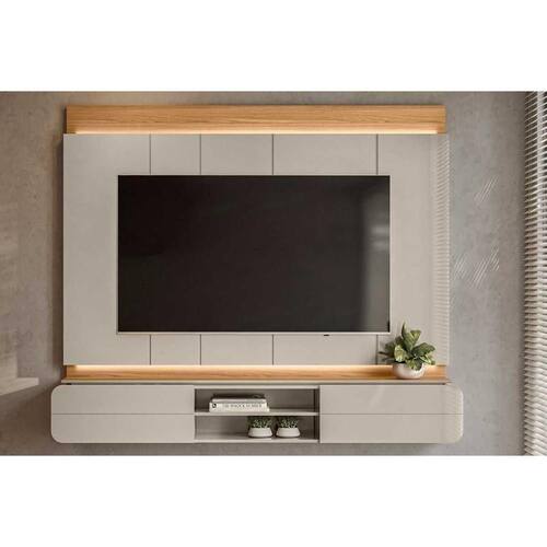 Painel Home p/ TV até 75 Pol Zurique c/ 2 Porta e 1 Prateleira 200x173cm Tauari/Off White Brilho - Linea Brasil