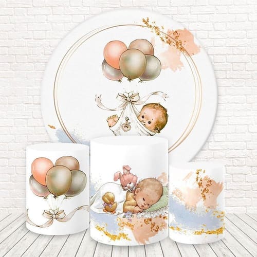 Painel Redondo Capas Tecido Sublimado Chá DBebê Fkpc-1379