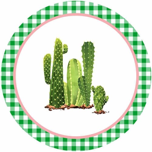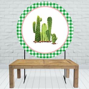 Painel Redondo De Festa Cactos Xadrez 130X130 - Cac02