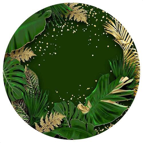 Painel Redondo Sublimado 1,5m Festa Tecido Elástico Fácil - Folhagem Dourada Painel Redondo Para Decoração de Festa Sublimado Em Tecido 1,50 de Diâmetro