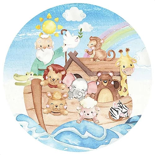 Painel Redondo Sublimado 1,5m Festa Tecido Elástico Fácil - Arca de noé Painel Redondo Para Decoração de Festa Sublimado Em Tecido 1,50 de Diâmetro Sistema