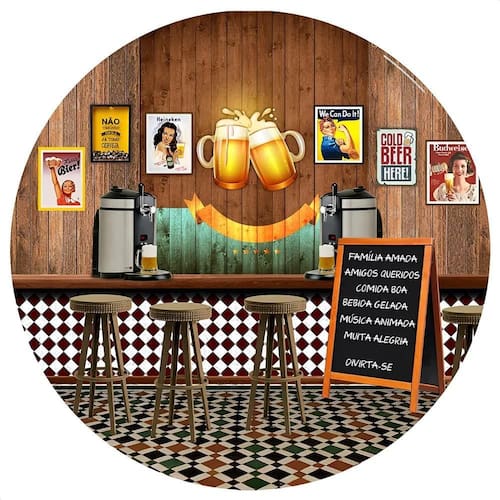 Painel Redondo Sublimado 1,5m Festa Tecido Elástico Fácil - Boteco Painel Redondo Para Decoração de Festa Sublimado Em Tecido 1,50 de Diâmetro Sistema VESTE