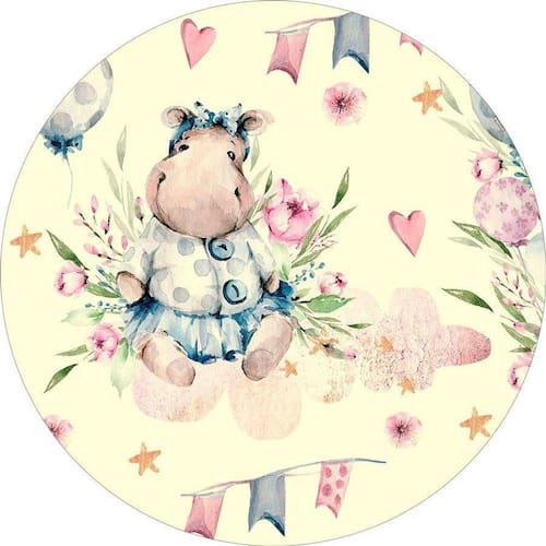 Painel Redondo Tecido Sublimado 3D Hipopotámo Frd-5710