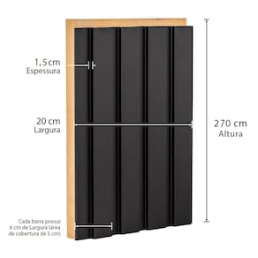 O painel ripado CASABLANCA é composto por barras de 270cm de comprimento, 1,5cm de espessura e 6cm de largura, área de cobertura de 5cm, pois uma barra sobrepõe a outra. Comercializado em pacotes com 4 unidades, o pacote (ou seja, as 4 barras juntas) correspondem a 0,54m², para ser montado como e onde quiser. 1 Pacote 0,54m²/ 2 Pacotes - 1,08m²/ 3 Pacotes - 1,62m²...